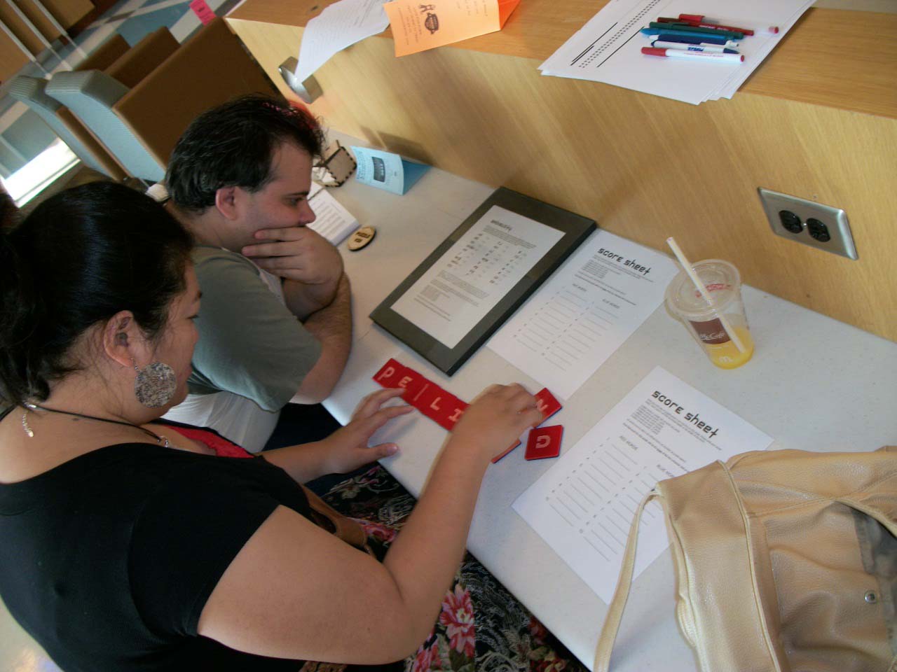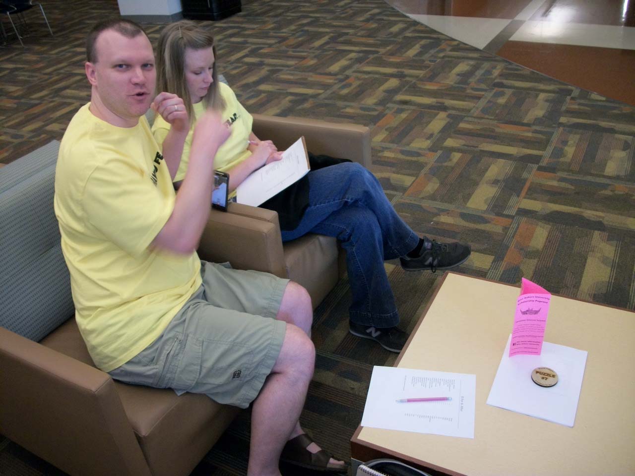Here are quick pictures I snapped of each team in the first round as they tackled their first puzzles of the day (which are puzzles created by the teams next on the list):