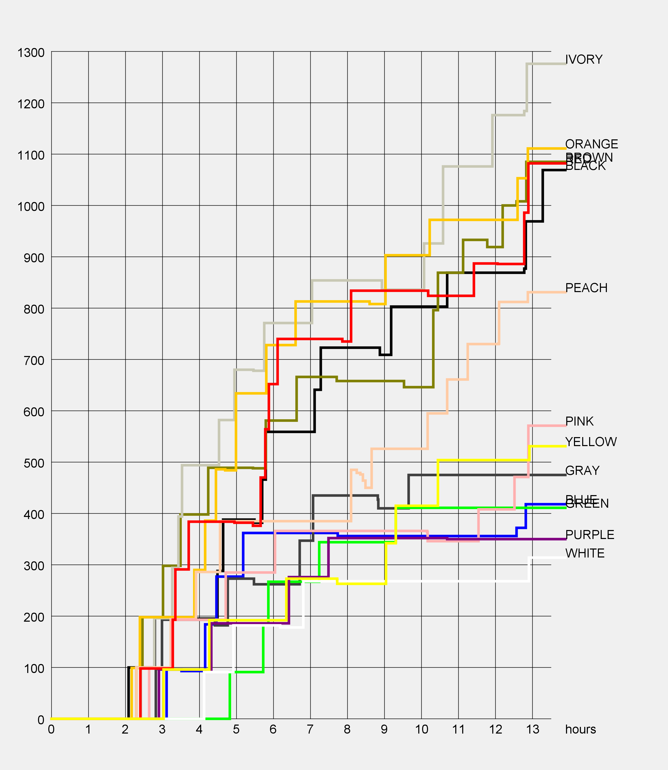 | IVORY (51) | ORANGE (52) | PEACH (37) | PINK (43) | PURPLE (19) |