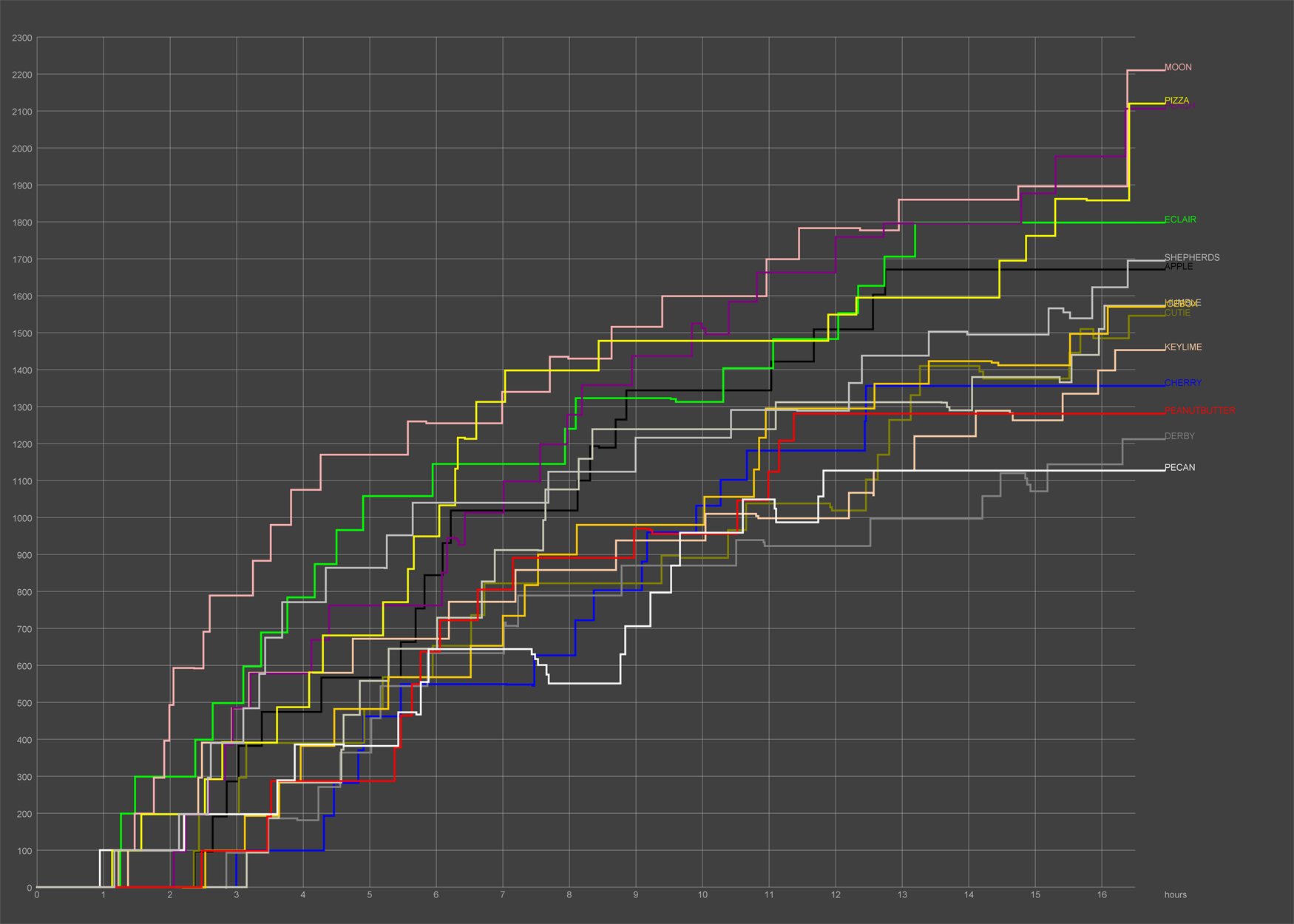 In addition to the final scoreboard linked to above, you may view and graph of how all of the teams performed hour by hour by clicking here.