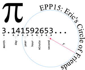 Pi-Day 2015 was a thrilling ride for all teams involved. Fourteen teams competed in "Eric's Circle of Friends", and while most teams ended up solving more puzzles than they ever had during one of my Parties, only four of the teams decoded enough of the hidden information to make it into the "Inner Circle". The event came down to the wire and depended upon the final challenge: the "Center of Attention". After a nerve-wracking finish (in more ways than one), Team Moon Pie prevailed.