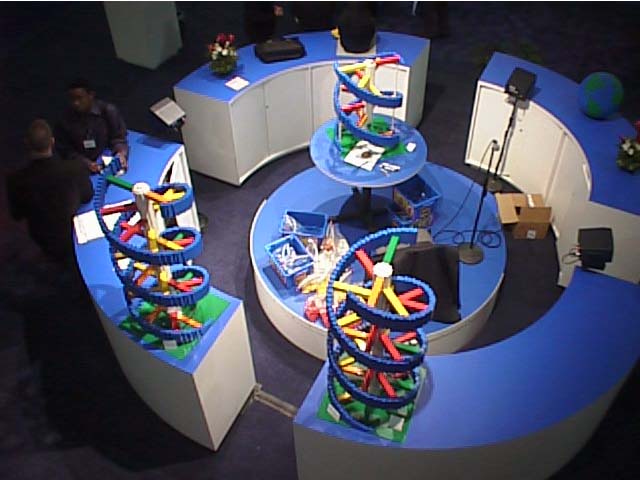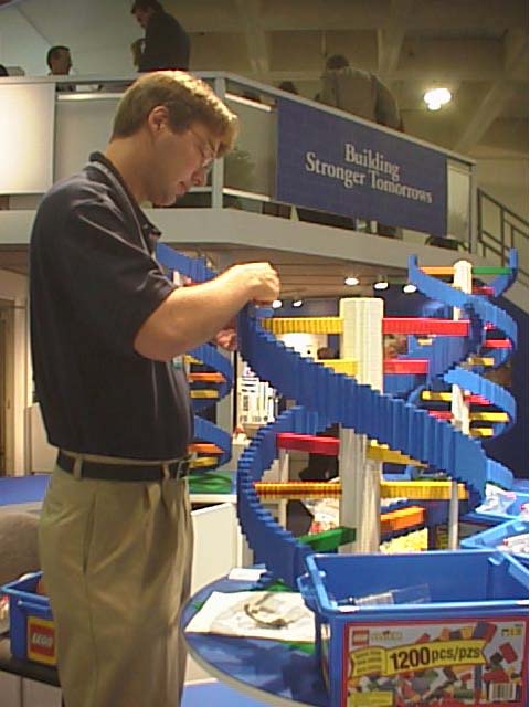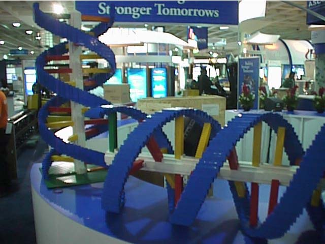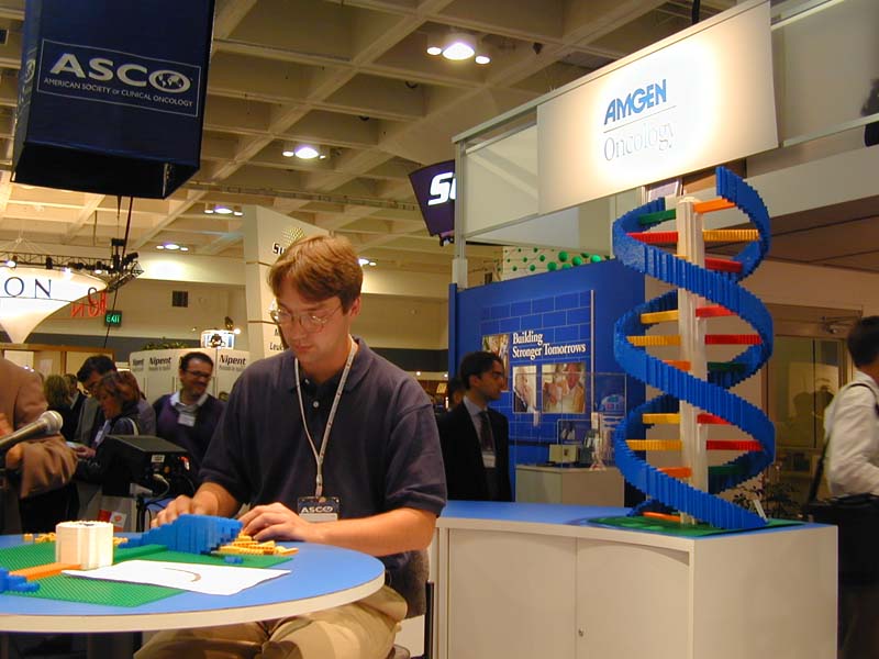 For certain 2001 conventions (American Society of Climical Oncologists (ASCO), and Oncology Nursing Society (ONS)), the company was pitching a slogan of 'Building Stronger Tomorrows'. To fit this theme and generate excitement over their tradeshow booth, AMGEN decided to have me display some of my LEGO models (*building* a strong tomorrow -- get it?) as well as create a set of DNA Double Helices.