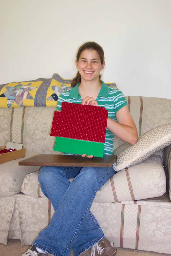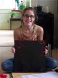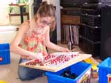 The pictures to the right show Abby as she has completed her very first plate (mostly black -- verrryyy easy one, there) and also as she assembles a trickier one later (her fourth, I think). Will she still be smiling after the tenth plate? The twentieth?