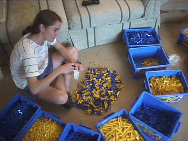 Anyway, on 9 July 2001 Dorothy sorted the last remaining pieces (a bag of 1x4 yellows, 1x2, 1x3, 2x3, and 2x4 greens, and 1x6 red and blues). In roughly 20 days of work she managed to organize about half a million LEGO bricks.