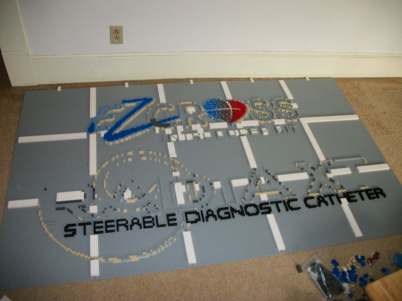 Of course, they approached me with even less lead-time... about three weeks. There was no way a sculpture was going to get built in that time. But a mosaic was possible. While this project for the HRS tradeshow in San Francisco was not as remarkable as the four foot tall heart from the previous year, it has always been a dream of mine to build a LEGO mosaic that included the words "STEERABLE DIAGNOSTIC CATHETER."