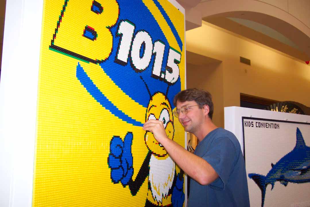 I built this mosaic along with the Shark Mosaic for a promotion event for radio station B101.5 of Fredericksburg, Virginia. It is 160x240 studs. I used bricks (not plates) to cover the baseplates. I used a lot of 2x2 bricks, so the construction went rather quickly (3 days). Obviously a lot of yellow was needed.