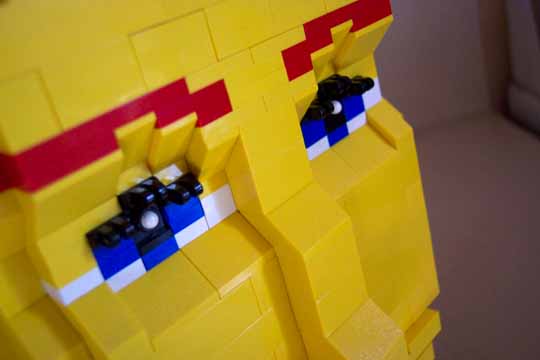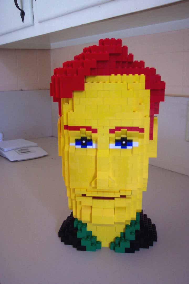 Building a LEGO bust is all about caricature, finding the features of a person which people most easily recognize and exaggerating those. For Conan this is obviously the bright hair and the long thin nose.