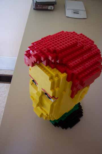 I didn't have an unlimited amount of yellow slopes by any means, but I did have just enough to fashion a model of a head that ended up just over 13 inches tall.