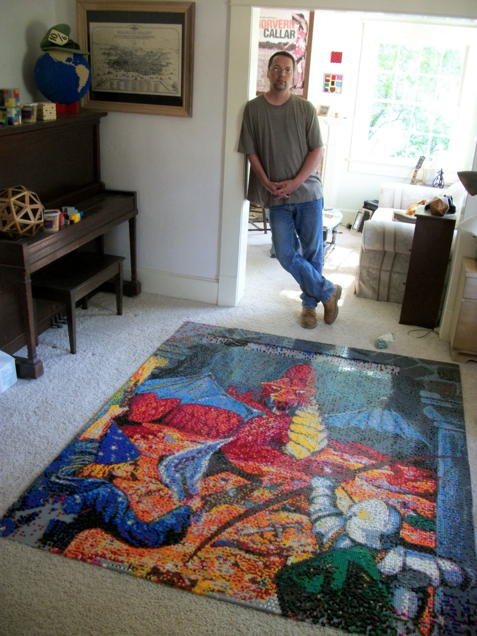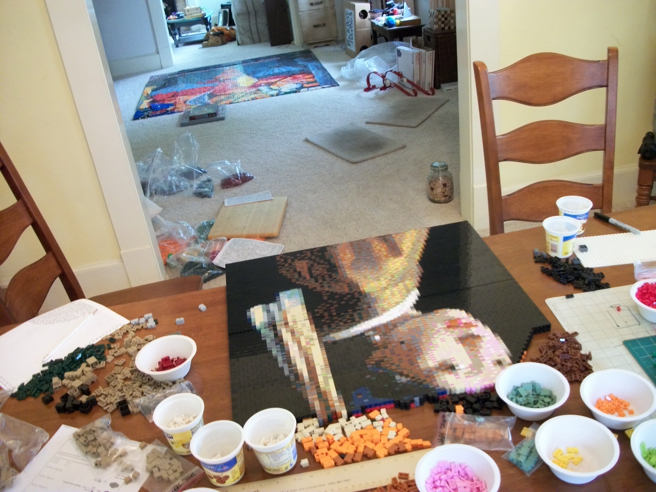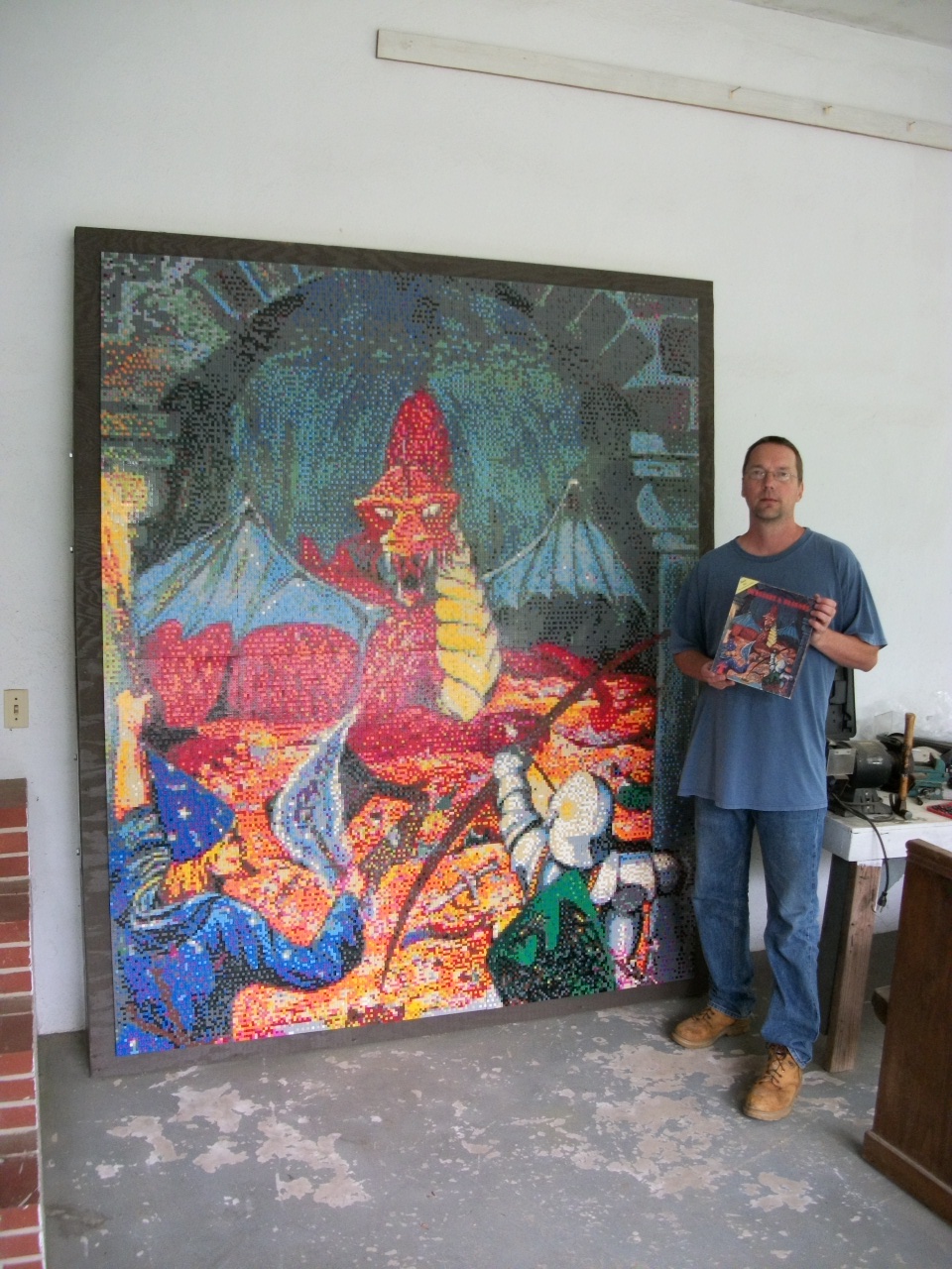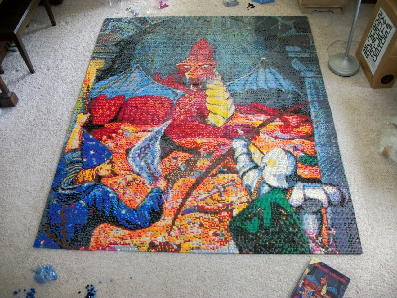 I often contend that three of the most significant influences on my adolescent years were: LEGO building, computer programming, and playing Dungeons & Dragons. With this latest mosaic project, I more or less bring all of those things together (the LEGO and D&D are obvious, while behind the scenes I have the software program I wrote to help me map out the whole mural).