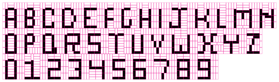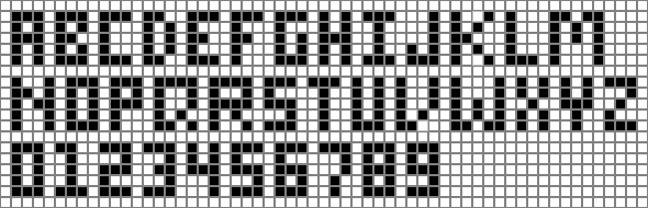 It is quite easy since it is based on a simple square grid pattern. This is pretty much the smallest size I use in this fashion since any smaller and one would lose adequate resolution (I once designed a font based on the face of a Rubik's Cube -- 3x3 grid cells -- but one had to use one's imagination on some of the more intricate letters).