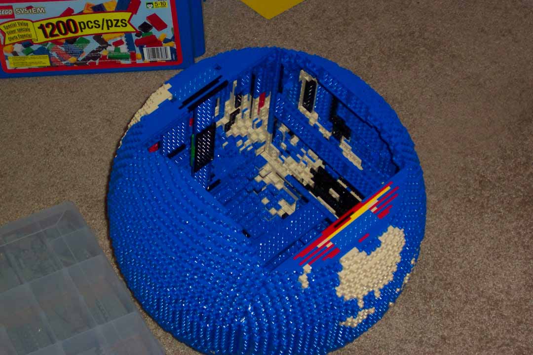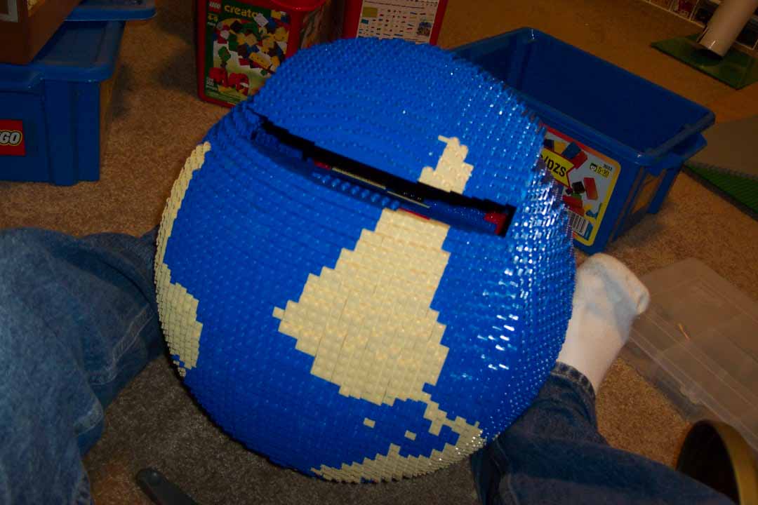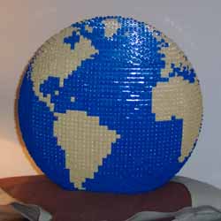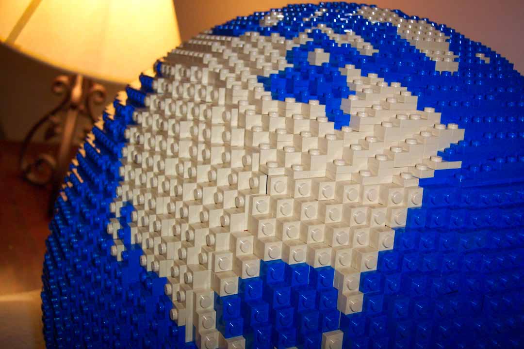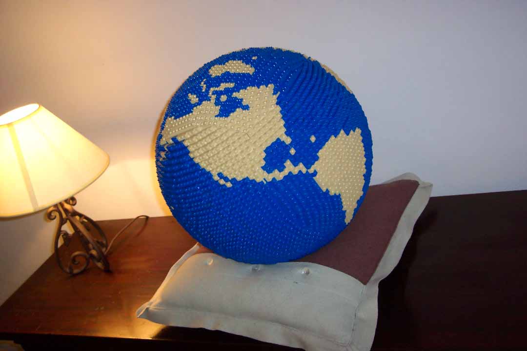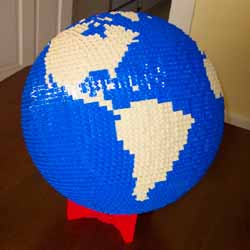 One of the first sculptures I built, back in 1999, was a globe. It was 15 inches in diameter. While I was pleased with it, I always regretted making the land masses green against the blue bricks of the water. The contrast was not very good.