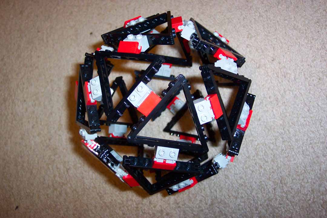 Within about 30 minutes, I had one assembled. Really, it's not much more than a skeletal frame of an icosahedron, but it still looks nifty.