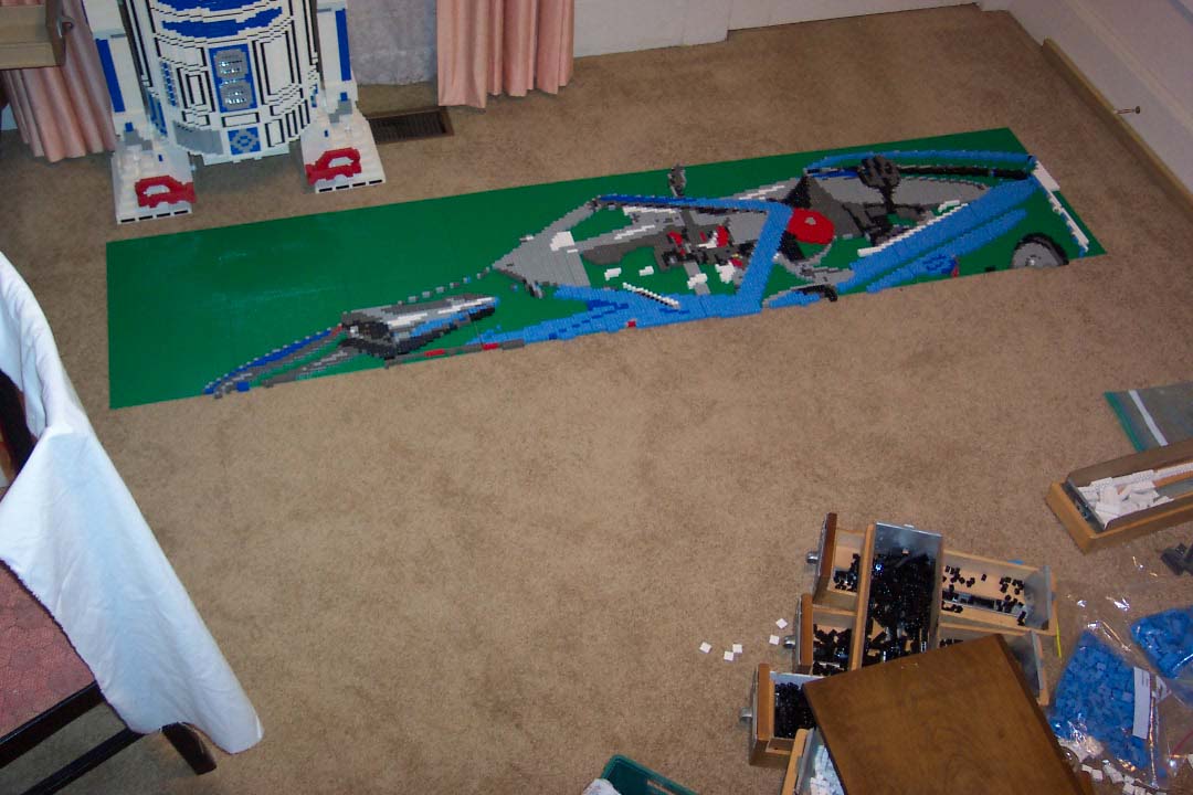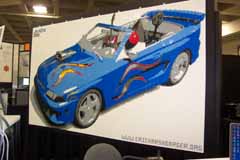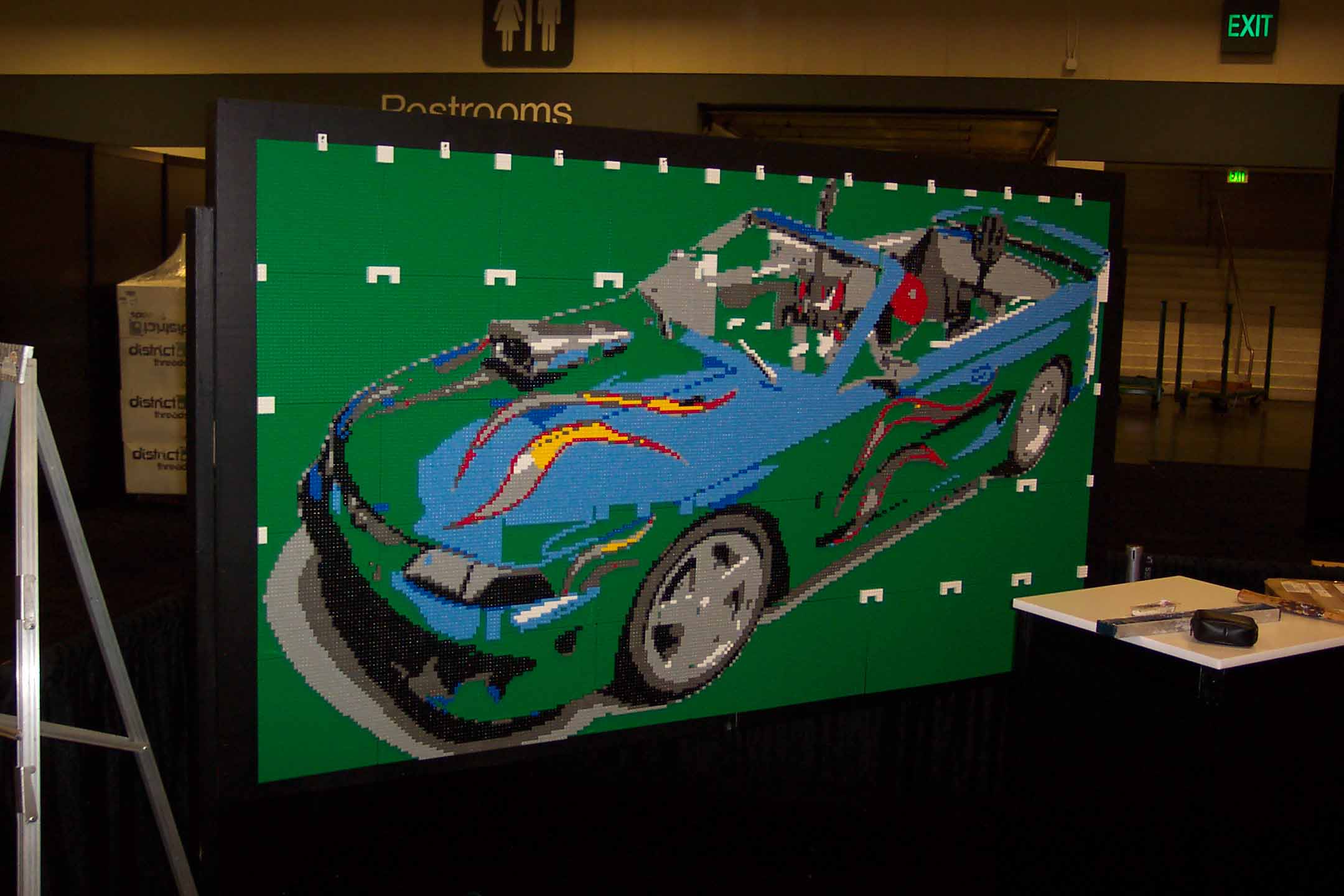 The mosaic project itself was fairly typical. In this case I was building a 90" x 50" rendition of a computer generated model of a Ford Mustang (with the Java "mascot" seated therein). What was more interesting about this demonstration was the fact that I was at a computer tradeshow and I was showing off not only the mosaic, but also the actual software I use to design the project. I was not selling PIXELEGO nor giving it away; just creating a medium sized mosaic to show off a "fun side" of the Java Technology.
