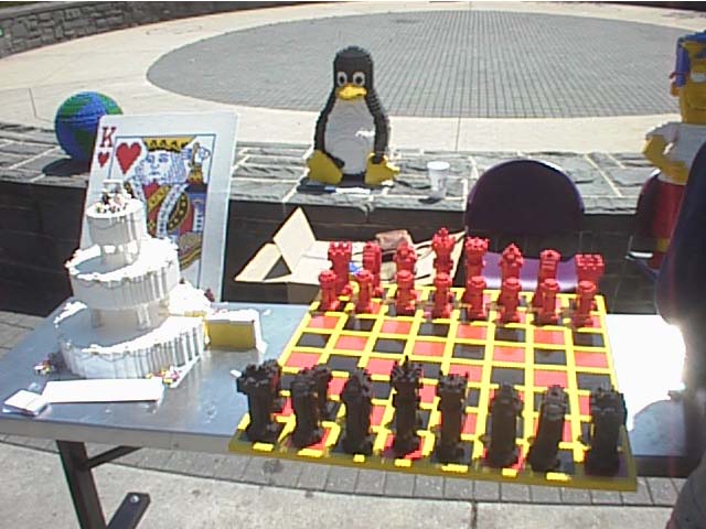The next morning I set up the models I had brought: Milhouse, The Chess Board, The BSD Daemon, Santa Claus, The Globe, The Parrot, The Suicide King mosaic, Pentominoes, and the recently completed Wedding Cake.