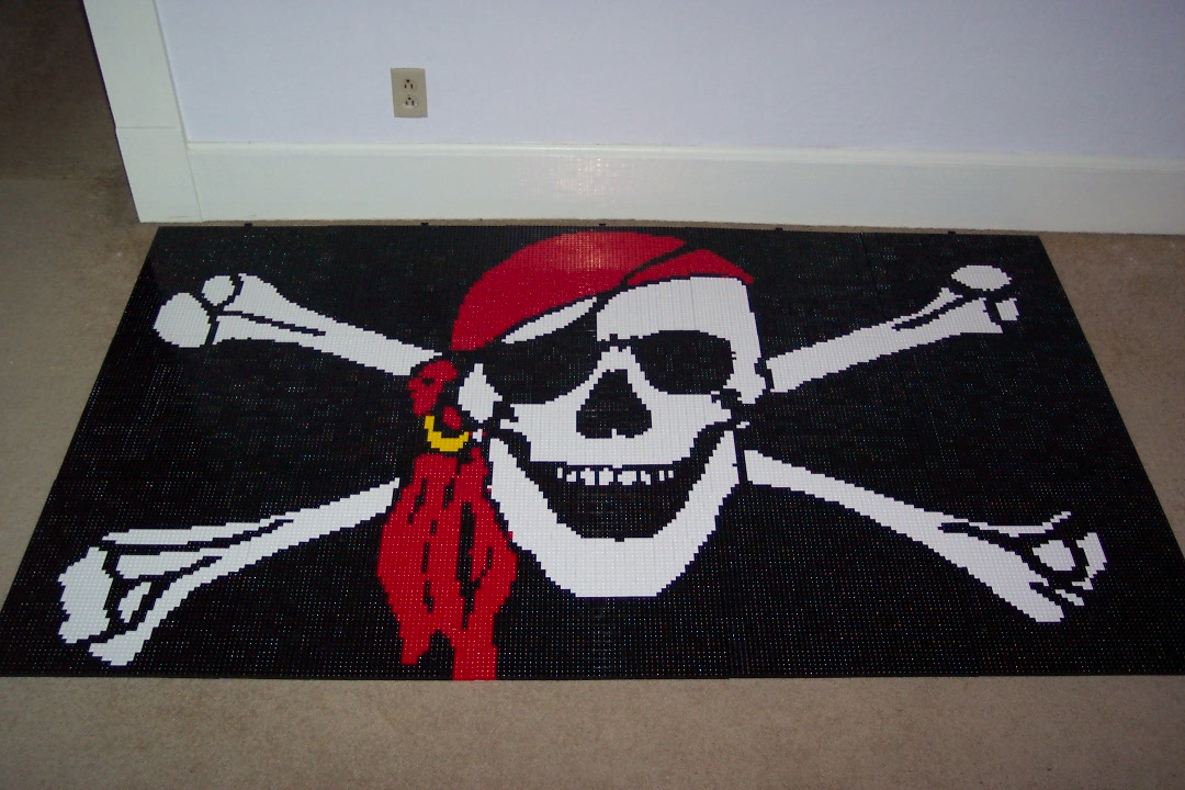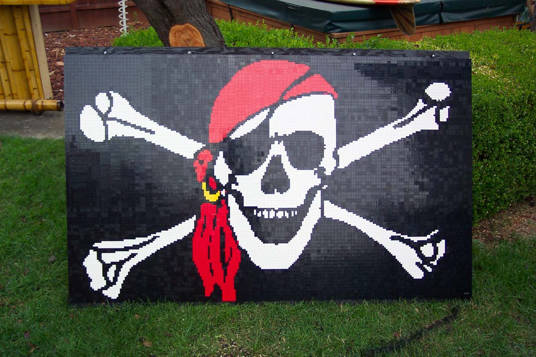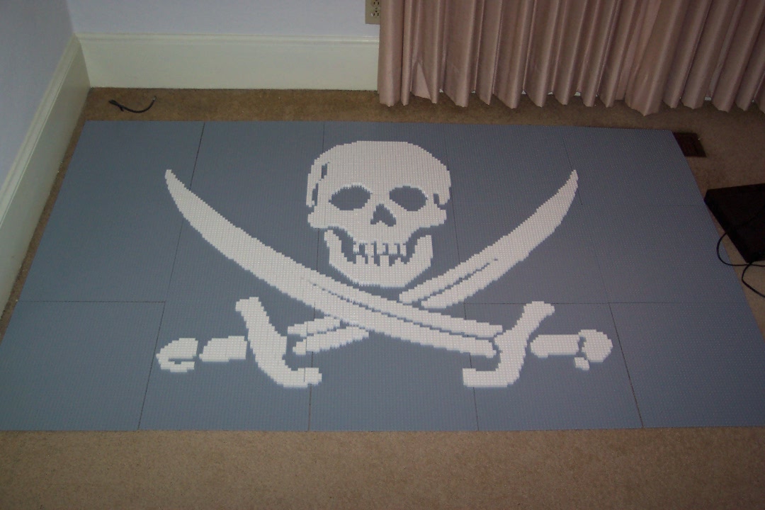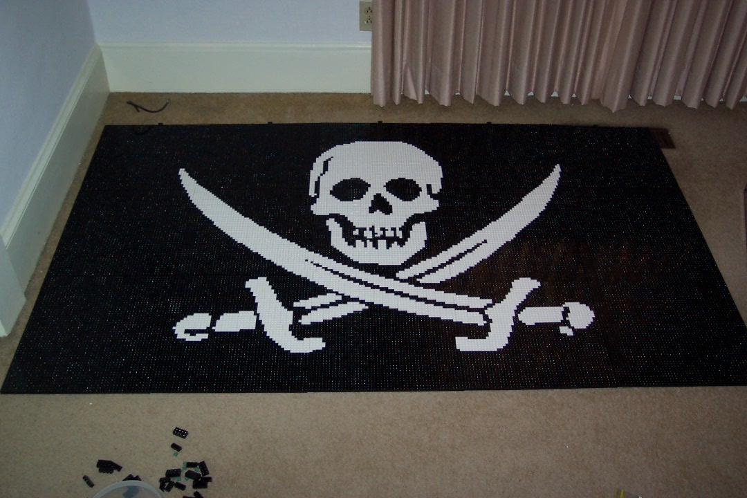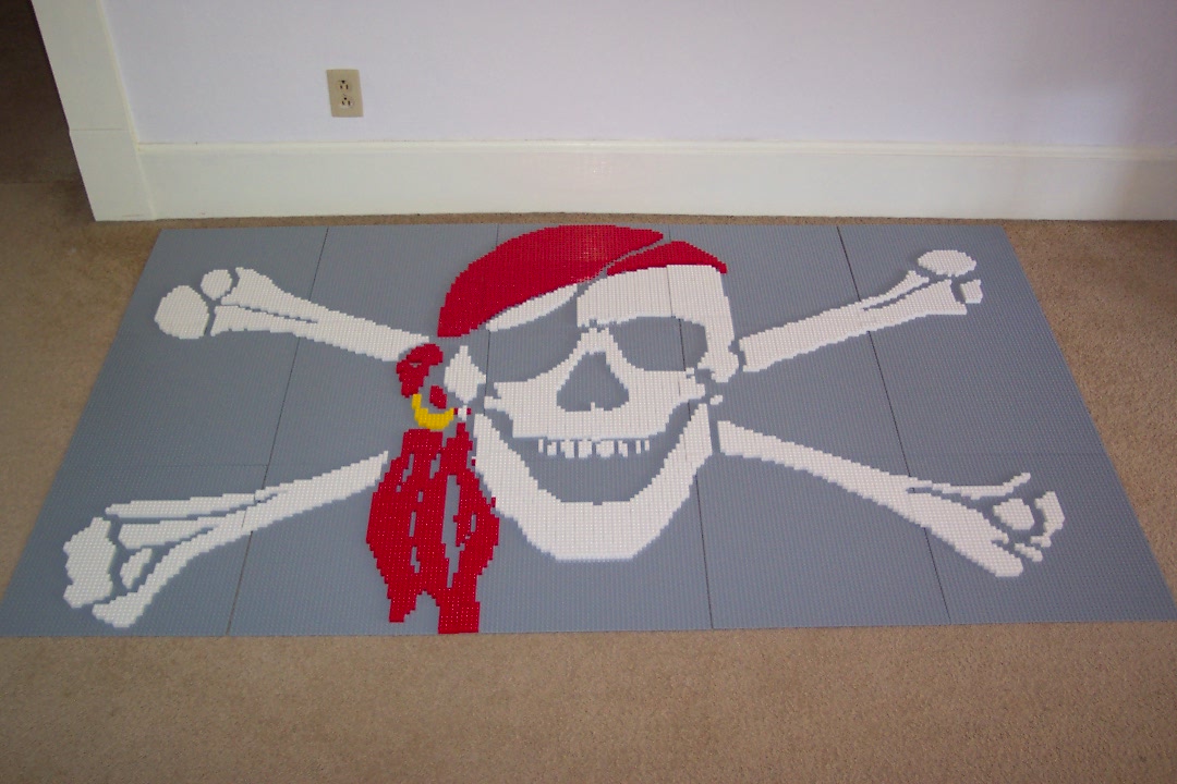 Pirates are all the rage right now (with Pirates of the Caribbean and all). My friend, Mark, however, has been collecting pirate items for well over a decade. Earlier this year, rather offhandedly, I suggested to him that a pirate flag mosaic would be quite easy to build out of LEGO pieces. I could make him one for a good price.