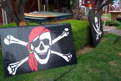 He liked the idea, but could not decide what style of Jolly Roger flag to go with. In the end, he just decided I should make two mosaics. Each one is 75 inches wide by 45 inches tall.