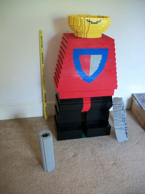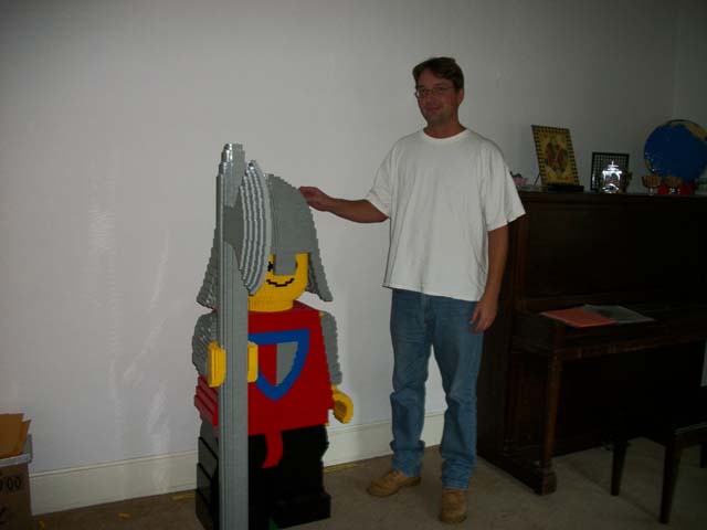 In 1999 I constructed my first LEGO sculpture on commission. It was for the MIT Media Lab; it was a model of an original LEGO Knight built at 16x scale. Now, almost exactly eleven years later, I've completed another model of the LEGO Knight... but this one is quite a bit bigger.