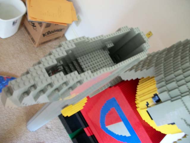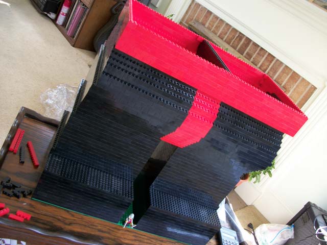 Thirteen orders later, from twelve separate BrickLink stores, over the span of about six weeks (pieces would arrive, I'd use them all up in less than a day of building, and then have to order more...), I had used just under 20,000 bricks. And this was with the model essentially hollow. His "skin" was only one brick thick throughout, and there was minimal interior strut-work to keep it sturdy and square.