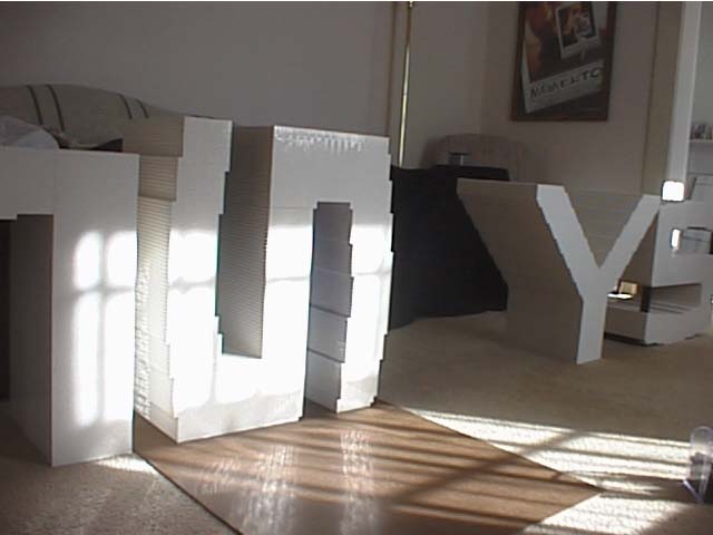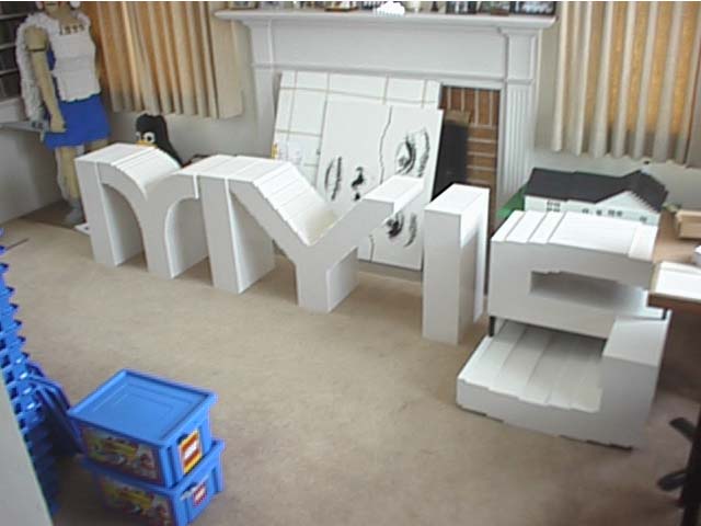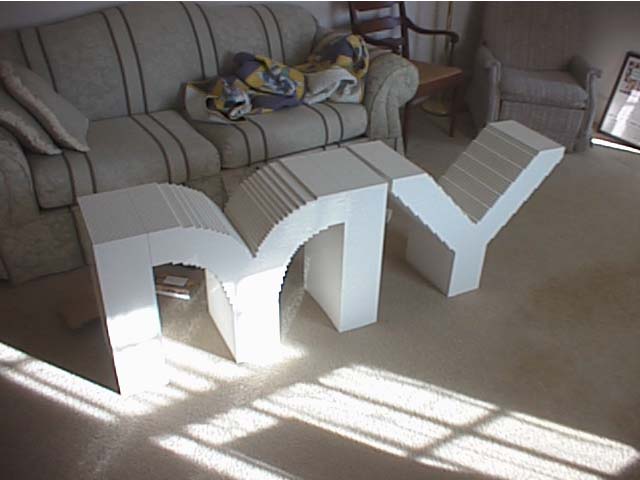 Having been given the digital image of the logo (see upper right of webpage) and the decision that the three dimensional letters should be about two feet tall, I started to build.