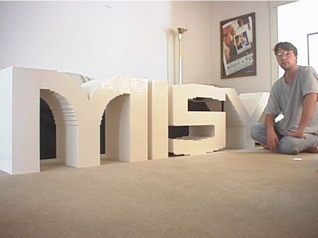 In late January 2002 I managed to accomplish two extremes with LEGO bricks and letters of the alphabet. First, there was a project with thousands of teeny, tiny letters, and a couple days after completing that, I had to exhibit five very large letters at a tradeshow.