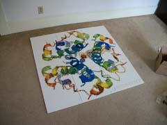 A large white background with bright colors used to depict the molecule itself. As usual, I "embossed" my name in the lower right corner. The final mosaic was 45" square (144 x 144 studs). I have not seen the mosaic in its final placement, I simply shipped it to the company and they assured me that it would be installed to their liking.