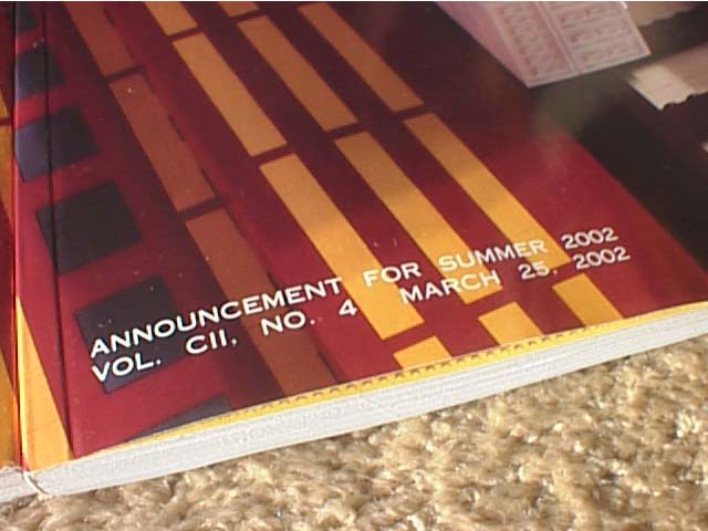 For those of you who would like to see the bulletin in better resolution than my crappy photographs, the inside cover gives this number to 'request a catalog': 212.998.7080 (outside NY: 877.998.7080).