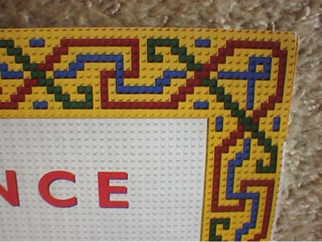 After Henry finished his buildings (he transported them to my studio in July 2001 before we treked to BrickFest of that year), and the rest of the model was completed, I also worked on some 'mosaic border' elements that were to be featured in an eight page color insert within the bulletin.