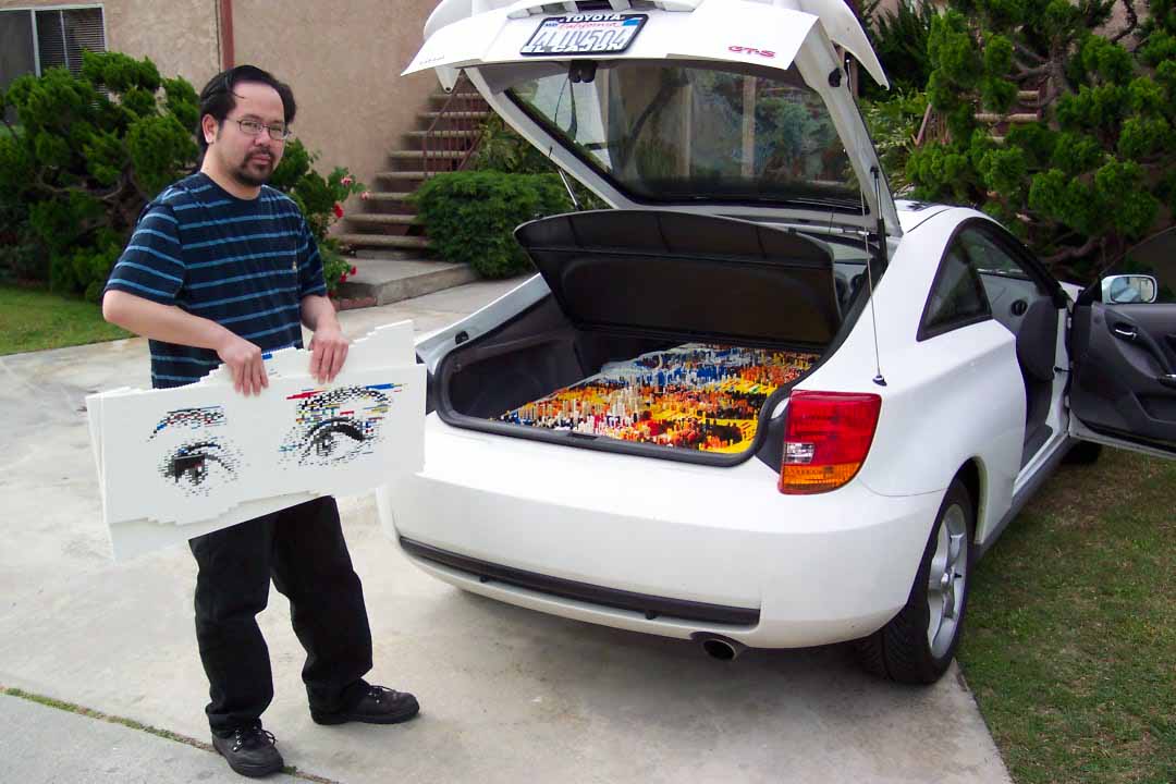 It gave me an excuse to do a cross country drive and visit friends on the West Coast. Plus, it let me determine exactly how I could fit my mosaics in my car (since I expect to be bringing many up to the 2003 BrickFest convention later this year).