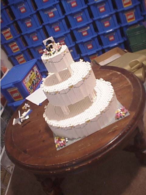 I had actually designed plans of construction for a large LEGO cake over a year ago, but it had never been fully built. With the apparent interest in wedding related LEGO models, I decided to go ahead and build such a cake so that the next time someone asks for something, I'll have completed this and can reply, "if you want this, I can ship it immediately".